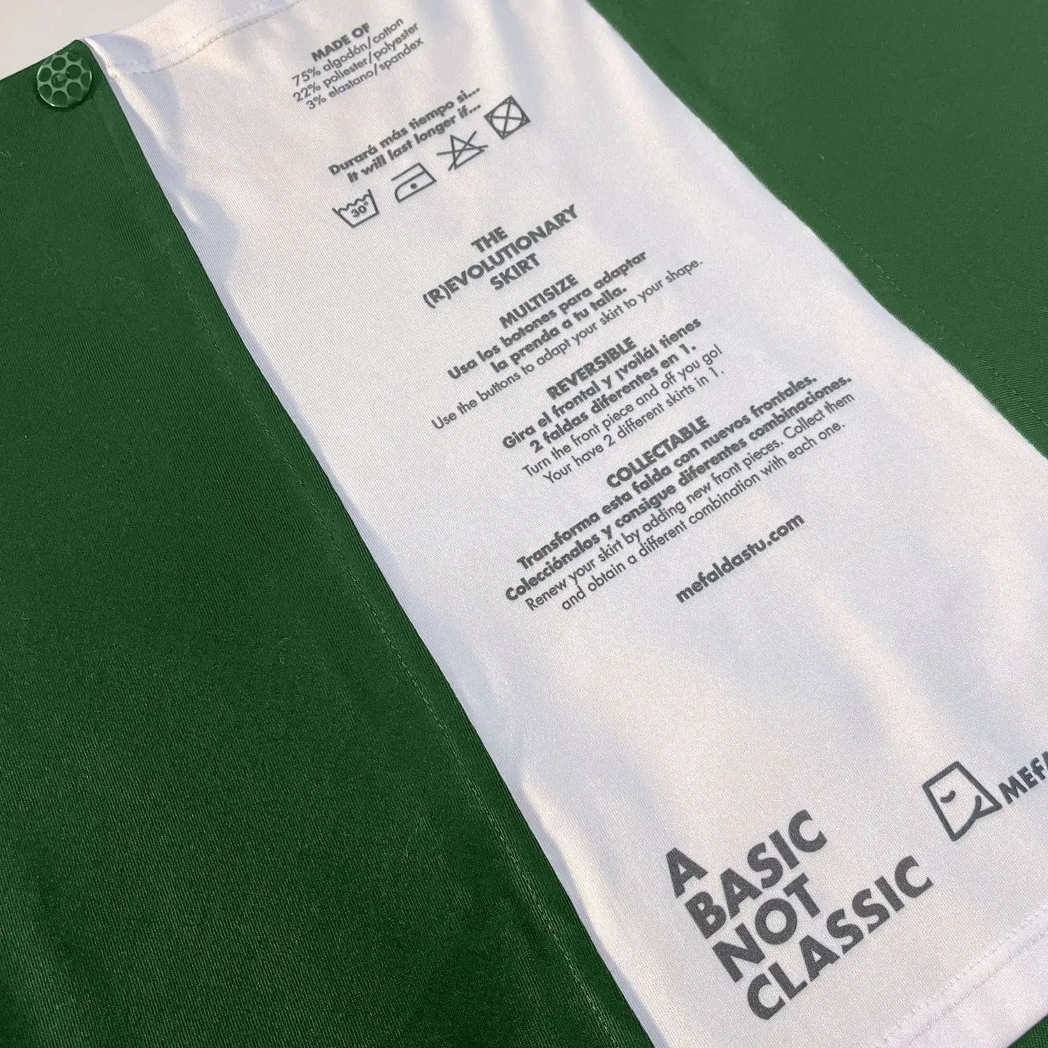 Pieza base de modelo falda duo,  multitalla, reversible, unisex, de gran versatilidad confeccionada en tejido de algodón/poliéster.