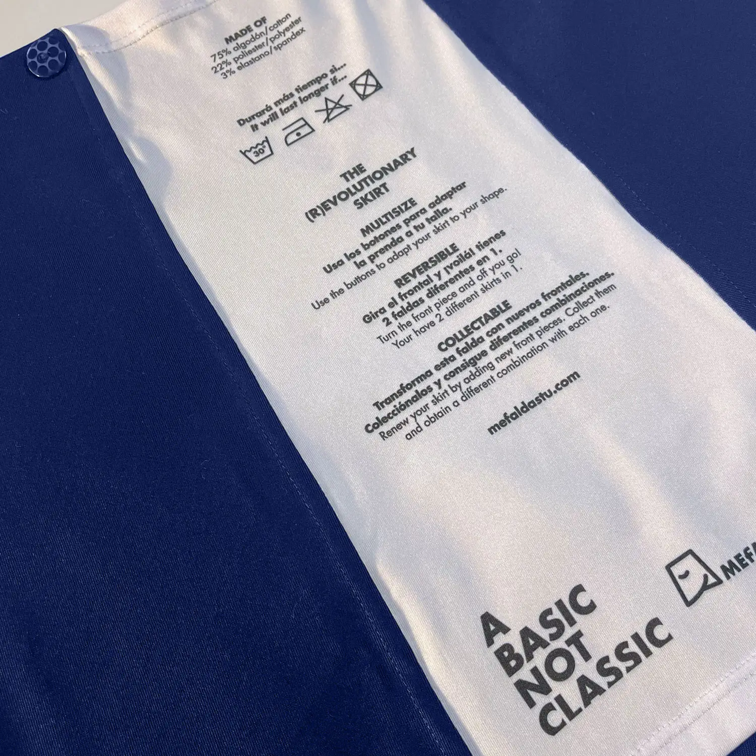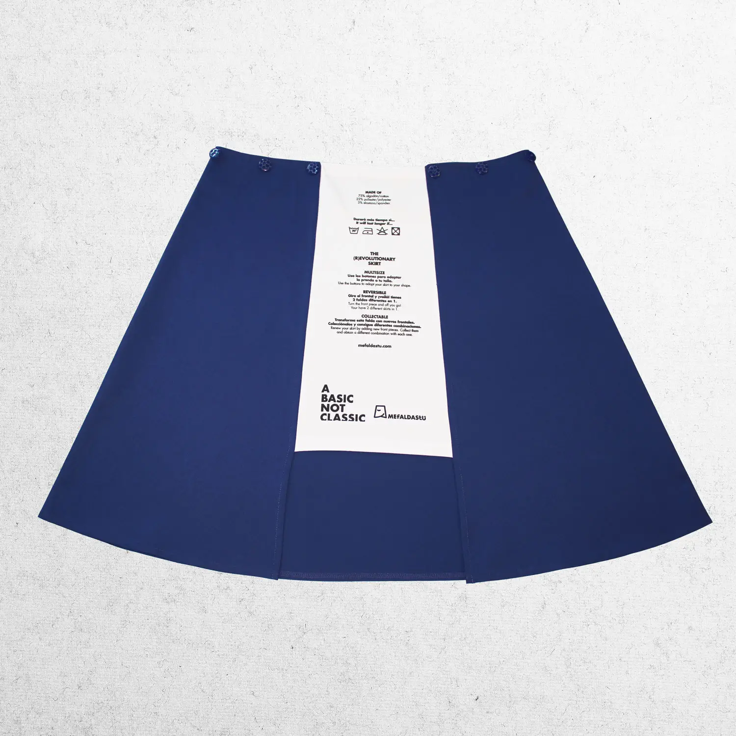 Pieza base de modelo falda duo, multitalla, reversible, unisex, de gran versatilidad confeccionada en tejido de algodón/poliéster.