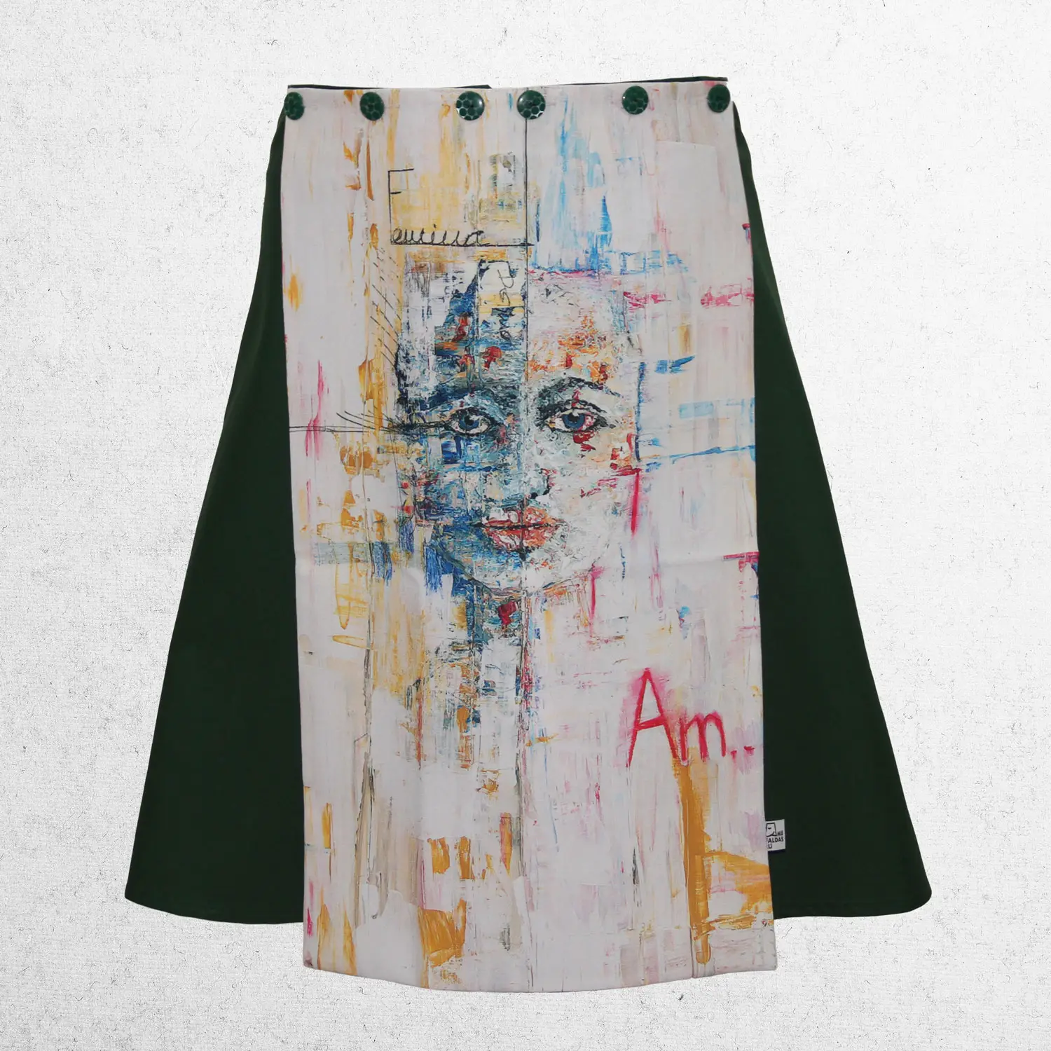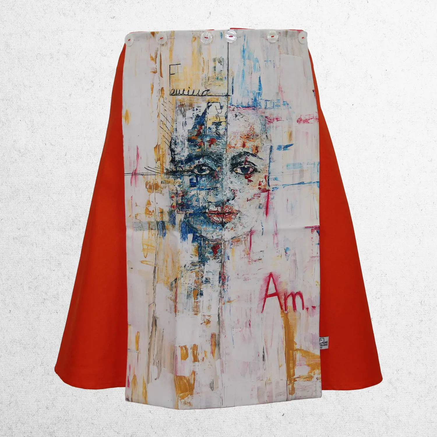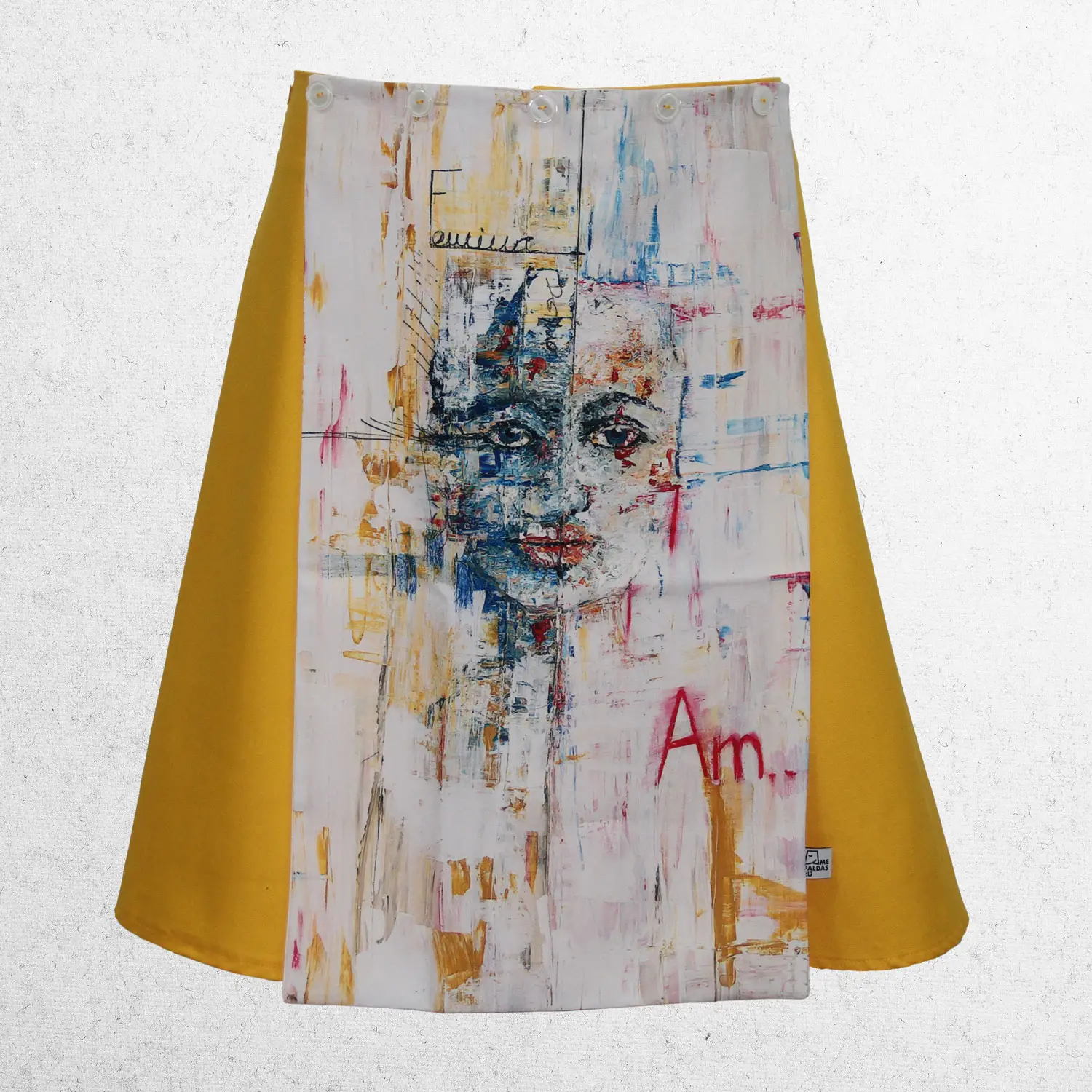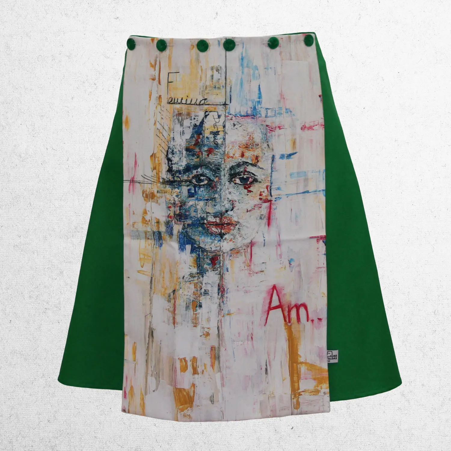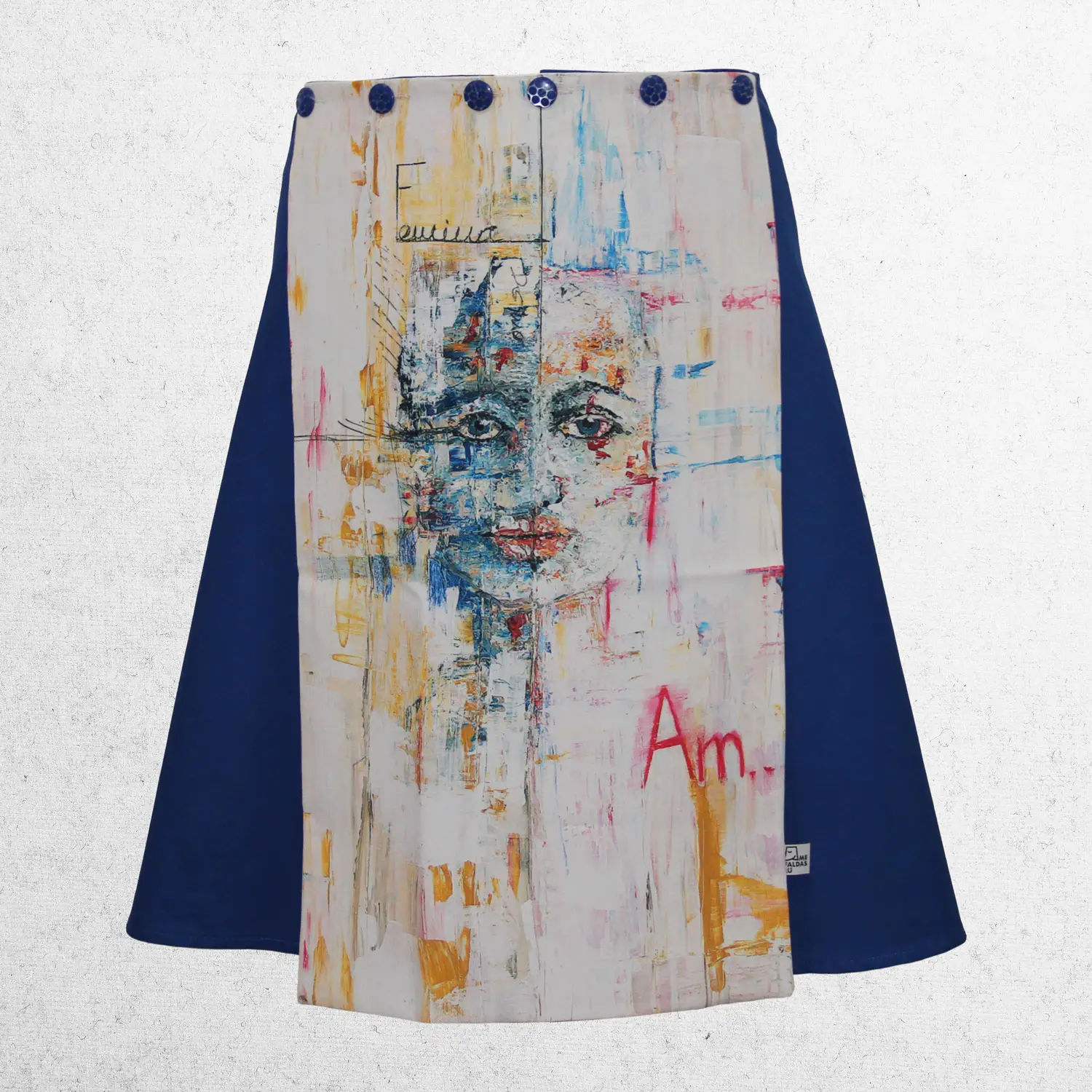 El lienzo de esta mefaldas Dúo ha sido realizado por Mercedes Naranjo, forma parte de la colección «Reflejos II» : Acrílico sobre madera