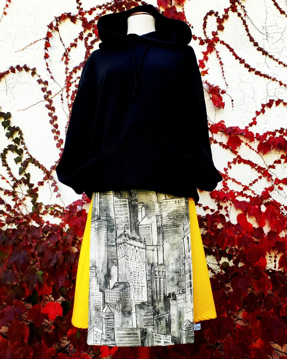 Este modelo de falda se compone de dos piezas y debe ir combinada con un paño para ajustar y adaptar la prenda.